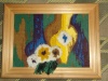 На первой картине он явно пытался изобразить бренность и запутанность мира. Но чем эта картина отличается от чёрного квадрата, убейте, не пойму: все образы едва проступают и хотя я увидел и лежащую женщину с запрокинутой головой и внимательно наблюдающий за нами глаз из потустороннего мира и яростную касатку-убийцу и чистую ангельскую душу, покидающую этот мир, но все эти образы так расплывчаты, что кто-то другой вполне может увидеть Джомолунгму или Квазимоду.