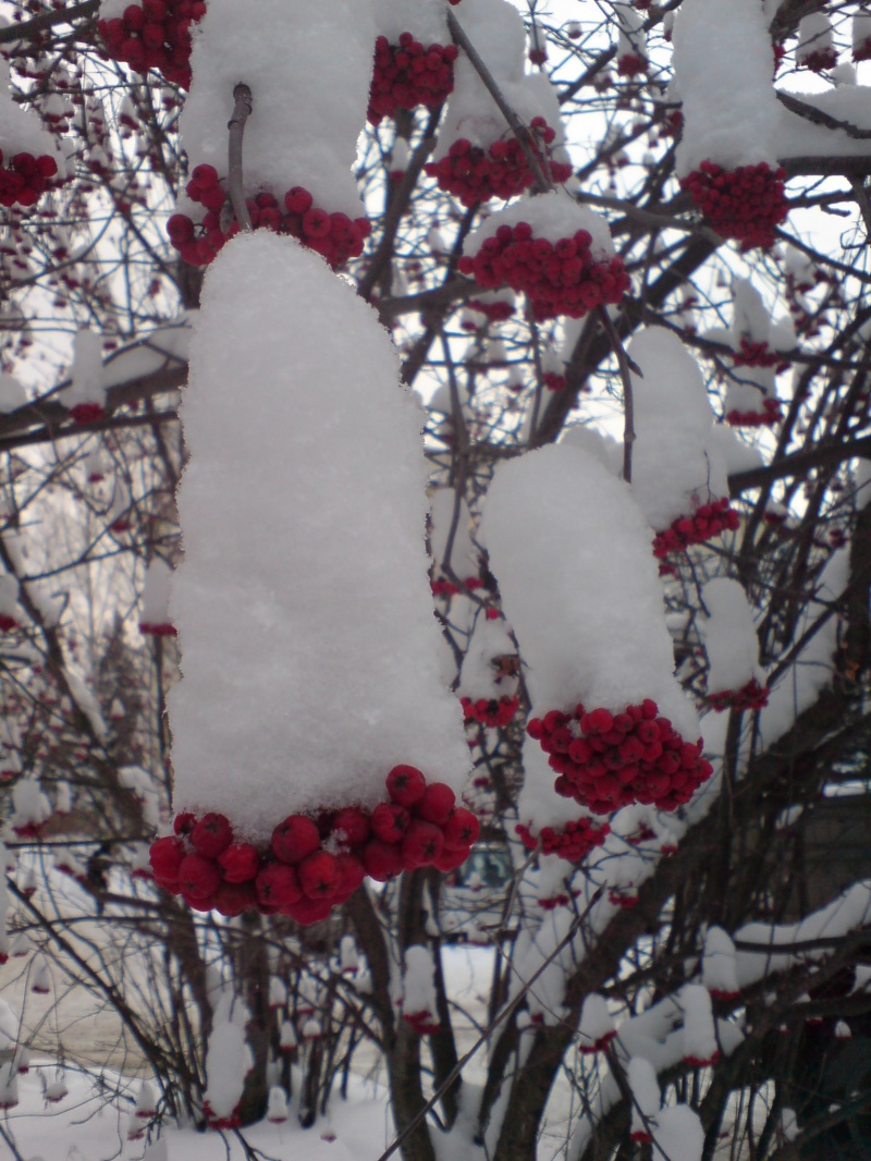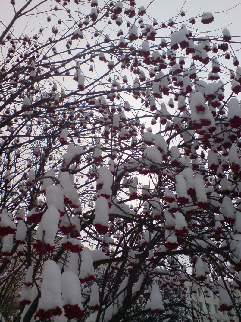 такие были хорошенькие сугробчики на каждой веточке ягод рябины, сантиметров до 20 некоторые в высоту :-)Телефоном, но сфотал