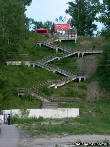 Однажды мы пошли на ВДНХ. В те времена в Барнауле ВДНХ работала, не была загажена и разрушена. Там можно было увидеть массу всего интересного. Даже три массы: техника, животные и аттракционы. Сама выставка находилась на вершине горы, и дорога на эту вершину лежала через множество лестничных пролётов (см прикрепленное фото нумеро 1), и мы, детвора, весело по этой самой лестнице скакали.