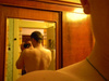Хорошо. Вынося за скобки его возраст - человек до сих пор живет в СССР. В смысле интерьера. Внося его возраст в скобки обратно - и при этом ему даже еще не 80! Что усугубляет. То есть нифига не эстет и, скорее всего( тут натяжка, признаю) - недостаточно образован. Из семьи, которую принято маркировать "простой". На шее - веревочка от крестика. Маркер, подтверждающий предыдущие. Занят таким дурацким делом, как фотографирование спины - туда же.СССР это святые воспоминания, "там для меня горит очаг как вечны знак забытых истин, мне до него последний шаг...." как можно
