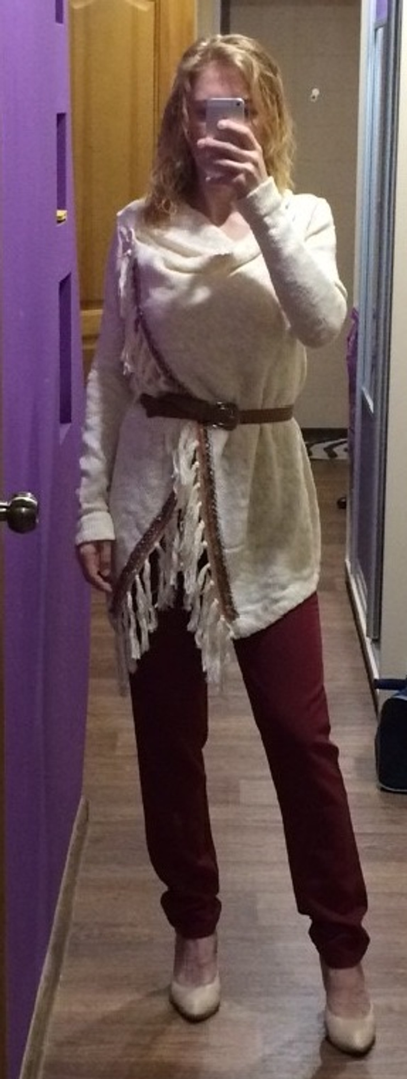 Мне очень нравятся эти штанишки и башмачки. Прекрасно тебе подходят и сами по себе хороши. Верх я сделала бы двухслойный: вниз свободный шелковый топ (из гладкого непрозрачного шелка) ниже талии, но не приталенный, а А-образный, сверху свободную стилизацию рубашки (расстегнутую, с закатанным рукавом) длиной до границы верхней трети бедра. А может, и действительно натуральная, а не псевдорубашка, подойдет. Надо мерить : )