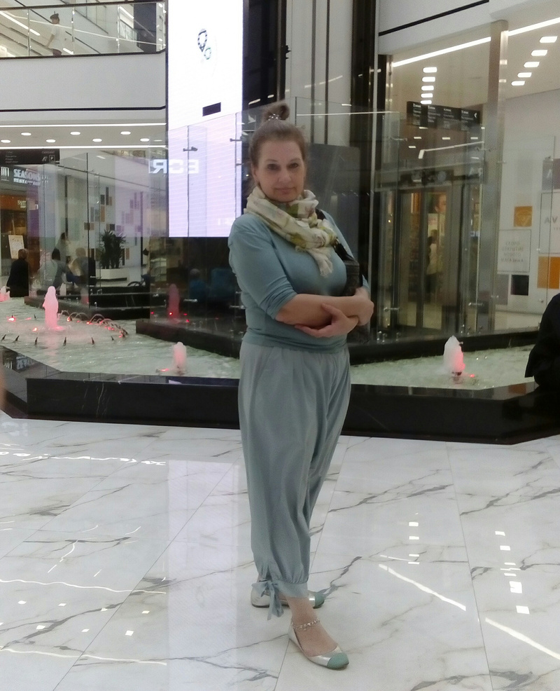 ну серо-голубые дымчатые. И что? все категорически не подходит. женщина очень толстая для этих вещей. нельзя из-за цвета только надевать то, что мало и подчеркивает недостатки