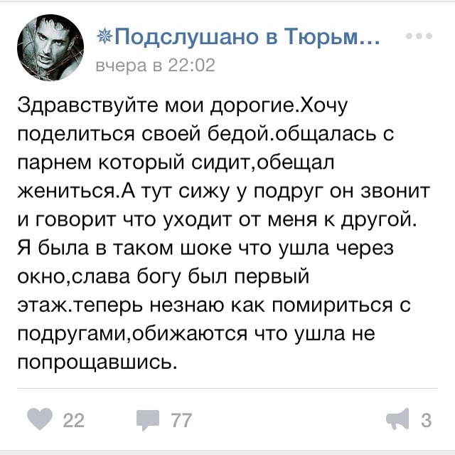 К женщинам на зону ездят только мамы, мужики их сразу бросают. А наши - ну чо. Они там фото выкладывают. После просмотра у меня не осталось вопросов.