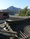 Чуть дальше, практически по дороге (из желтого кирпича - зачеркнуто), на склоне горы Намсан расположен парк...Вообще, он позиционируется как фольклорная деревня Намсангол, но это не деревня, это хороший приличный, в смысле большой, парк, в котором есть музейные образцы различных построек.
