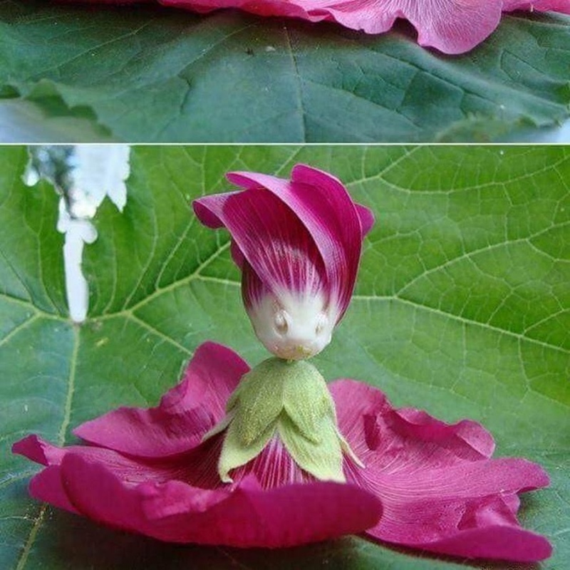 А из цветков и бутонов мальвы делали куколок. Бутон надо было ободрать от зелени и в одну из дырочек вставить "шейку" цветка.