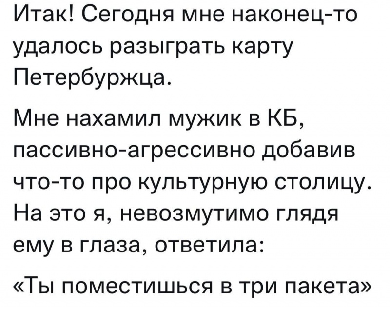 в Питере давно был?А жизнь длиннее не становится, и чё нам делать - застрелиться?