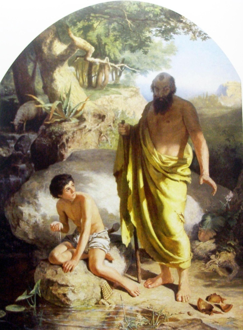 Позже Диоген разбил и свою миску, когда увидел другого мальчика, евшего чечевичную похлебку из куска выеденного хлеба.