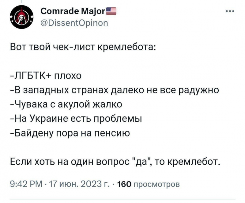 Для Свет про вопрос с донатами. Хотел вам сказать, но передумал. Учитесь сами отличать правду от лжи, шутки от всерьез. Без обид, но это в ваших интересах же.Ну раз за вас ответили ваши сомысленники, то грош цена любым вашим высказываниям тут. Это как с недовериям судам. Единожды солгавший и по тексту.