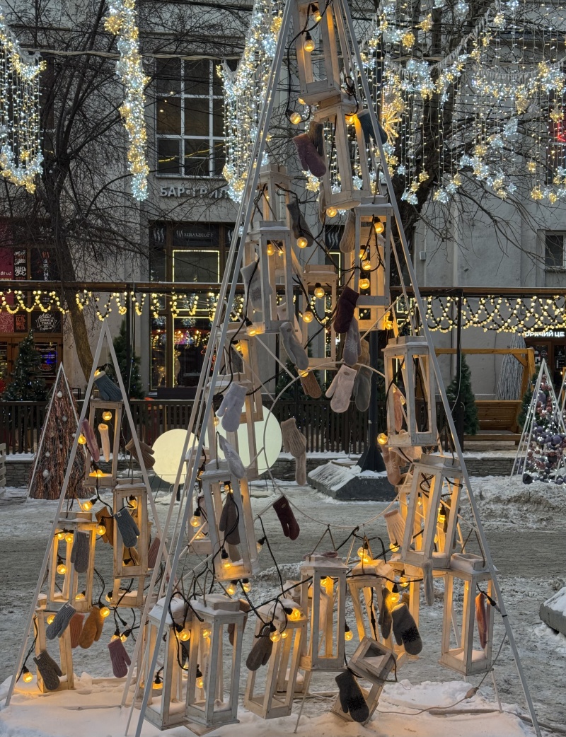А у нас со снегом пока как в Израиле. Наряженные елки стоят на мокром асфальте в полном недоумении. А декораций вокруг пруд пруди. Но все светящееся и блестящее фиг сфотографируешь, нужна спецтехника
