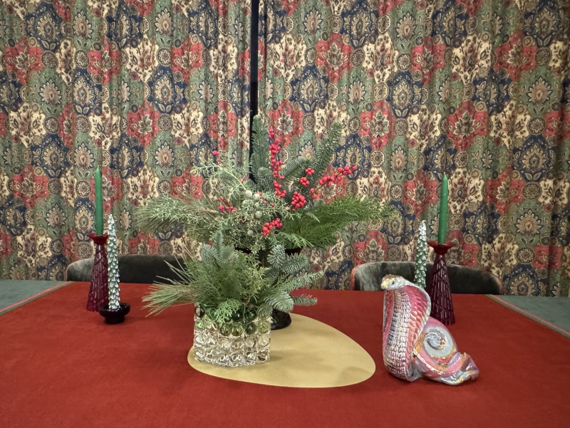 вот у нас тоже бы чего-нибудь блестящего не жалели, а то еловые ветки с красными бантами и больше ничего, как-то совсем на другое мероприятие намекают)