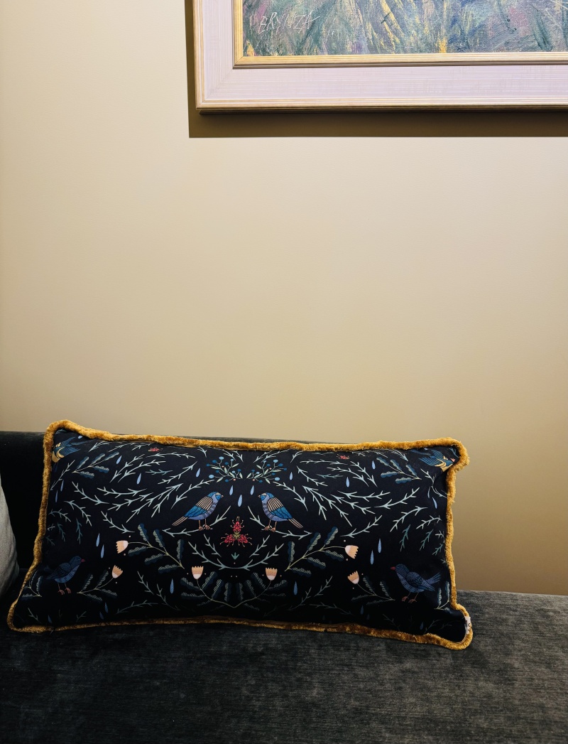 Кстати о быте. Давно слежу и периодически что-нибудь покупаю у Мойд (Mojd). Поскольку фирма питерская, а художница родом из Коми, изначальная стилистика была фольклорно-скандинавская. А сейчас смотрю, интересно эволюционируют, подушки от них с выставки принесла, которые скорее привет Уильяму нашему Моррису, нежели Скандинавии.
