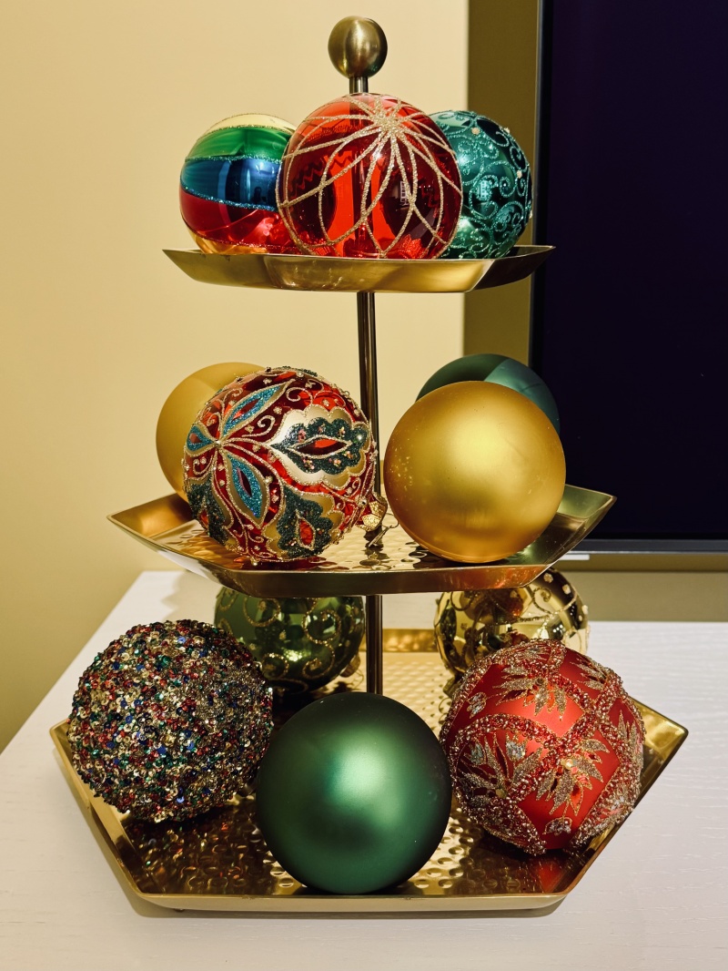 Я в очередной раз обнаружила, что организованные любым образом (вазой, корзинкой) елочные шары декоративнее неорганизованных.