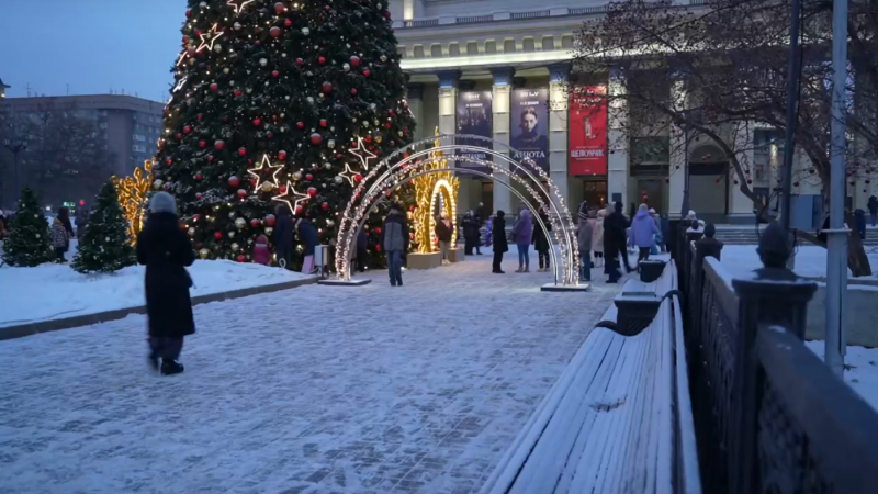 В Новосибирске 1 декабря зажгли новогоднюю иллюминацию и елка заиграла у Оперного.