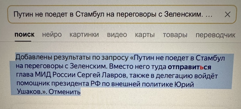 я думаю что нет. так дела не делаются: я тебе стрелку забил на районе... сначала переговорщики работают, первые лица едут уже к готовому субстрату... или может мы чего-то не знаем и давно договорнячок порешали«Встреча в Стамбуле может принести нам хорошие результаты, я верю, что там будут оба лидера. Я думаю о поездке в Стамбул. Есть вероятность, что я поеду, если я буду уверен, что все получится», сообщил сегодня Трамп журналистам