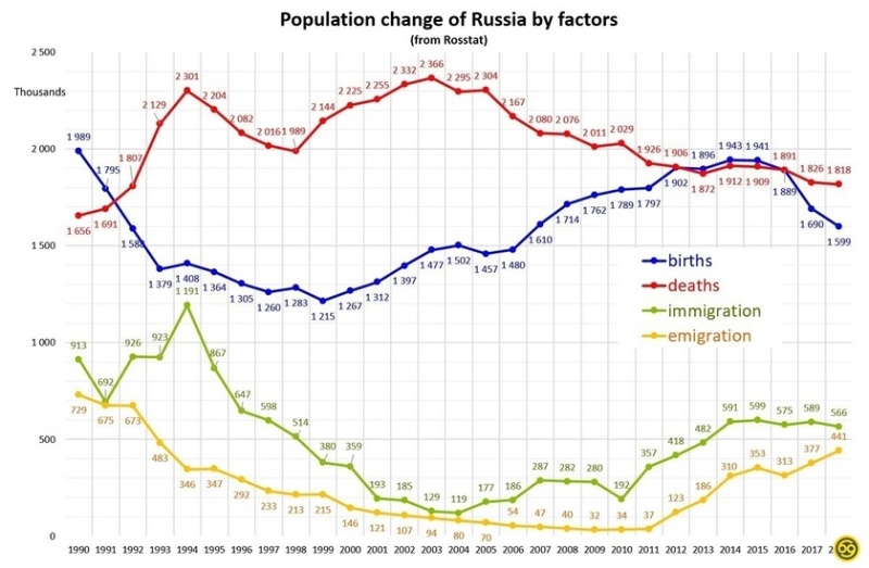Убыль населения сократится за счёт роста рождаемости и увеличения продолжительности жизни, но останется значительной (400–500 тыс. человек в год).