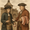 Попросил создать рисунок по сюжету: доктор Мессершмидт принимает от господина коменданта подарки:
