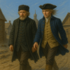 рисунок: доктор Мессершмидт и капитан Табберт прогуливаются по улицам Томска. Ветер северный сильный. Ясно. Холодно.