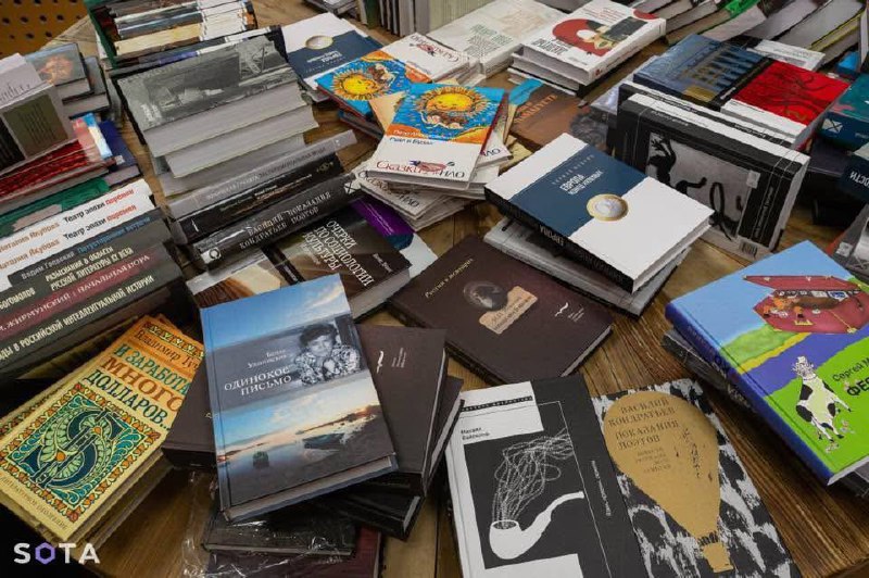 издательство "новое литературное обозрение" по дешевке распродает книги в здании театра наций на страстном. люди покупают коробками, в очереди стоят несколько часов.