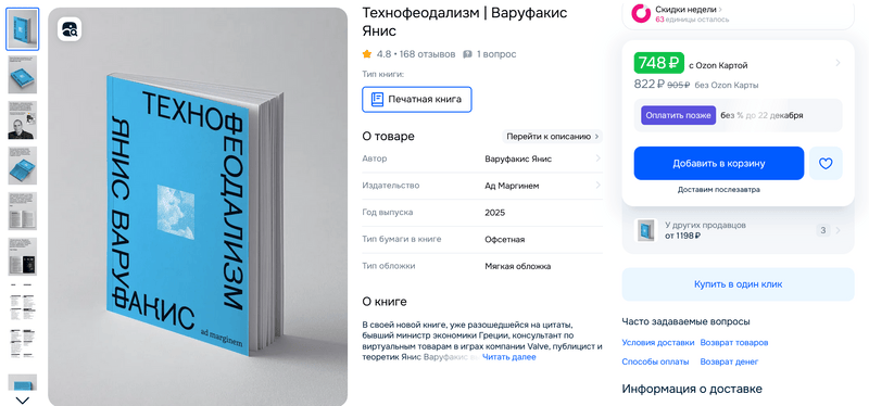 ...ну так правильно, эффективнее электронную версию так распространить...Ну так электронные версии имеют способность размножаться копированием. И к тому же автор критикует именно облачный капитализм. Непоследовательность налицо.