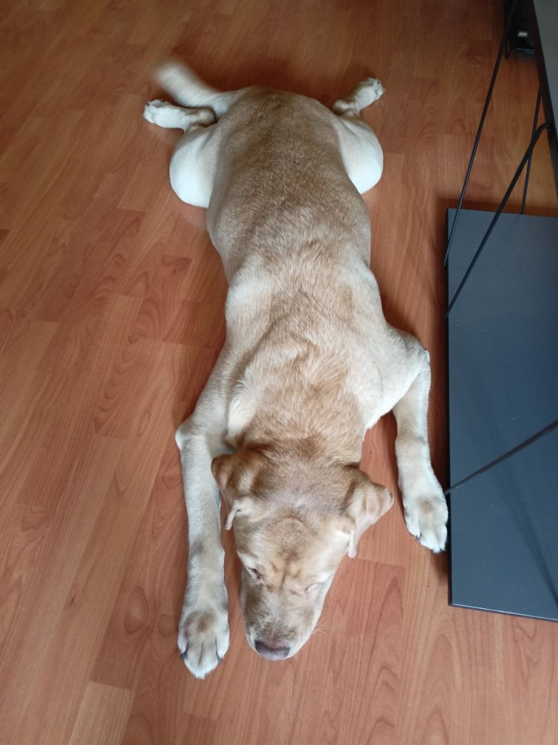 для нас засада, для пёселя - отрада. короче, чарли утром украла и сожрала целое блюдо блинов, которые свекровь испекла на завтрак всей семье. дурында даже потом в машину не смогла залезть, чтобы домой ехать, так объелась
