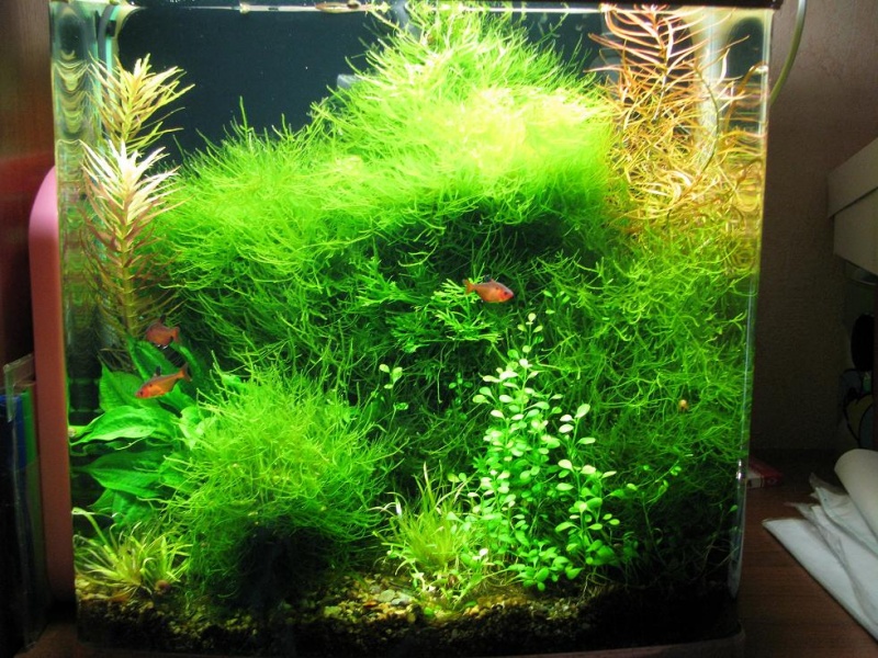 В общем...свет горит где то 7-8 часов. На передней стенке образуются зеленые точки водрослей, ну ладно...они легко счищаются. И сомам с улитками есть что поскрести. Но вода все же зеленоватая. Подмену делаю раз в неделю по 5-6 литров. Как добиться идеальной прозрачности воды? В 200 литровом аквасе таких проблем небыло. Вода была как хрусталь. И освещение помощнее...