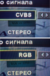 Привожу наглядное сравнение качества сигнала, полученного в формате RGB (обычно выдаётся через разъемы СКАРТ) и CVBS (это как раз то, что приходит по обычному тюльпану, ну и в СКАРТах тоже обязательно есть).