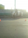 он, видать, с кирова с центра ехал и на полном ходу на каменскую стал поворачивать. Его, под действием инерции, повалила набок и он крышей вперед вылетел наискосок на встречку и доехал на боку до столба, где благополучно на него оделся