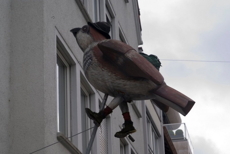 Поехали смотреть город. После безуспешных попыток покормить две парковочные шайтан- машины еврами был спасен аборигенами, которые объяснили что сегодня- халява с парковками по причине праздника. Где-то вычитал, что если в Ульме увидеть девять изображений воробьев - то будет много счастья. Начали охотиться на птичек. Настрелял десятка два :-)