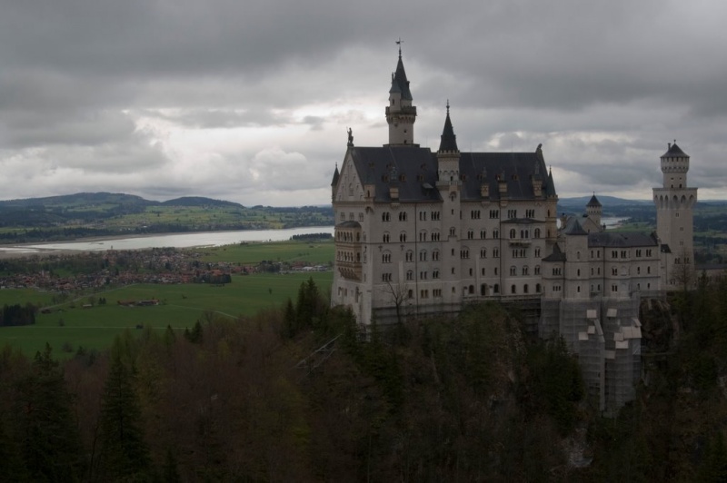 Из множества замков решили поглядеть самый известный -Нойшванштайн (Neuschwanstein). От Мюнхена до него километров 130, больше половины по автобану - более-менее на юг, E533, далее по местным дорогам, плавно переходящим в горные.