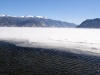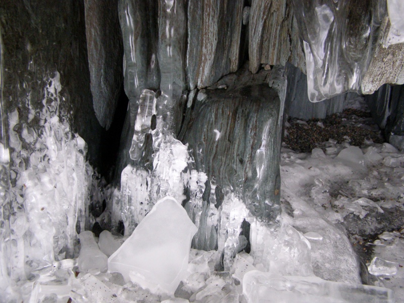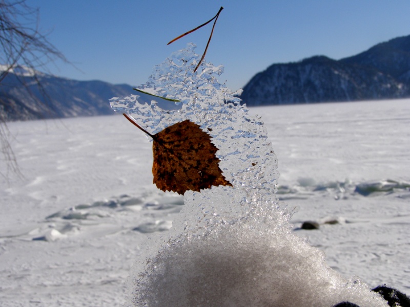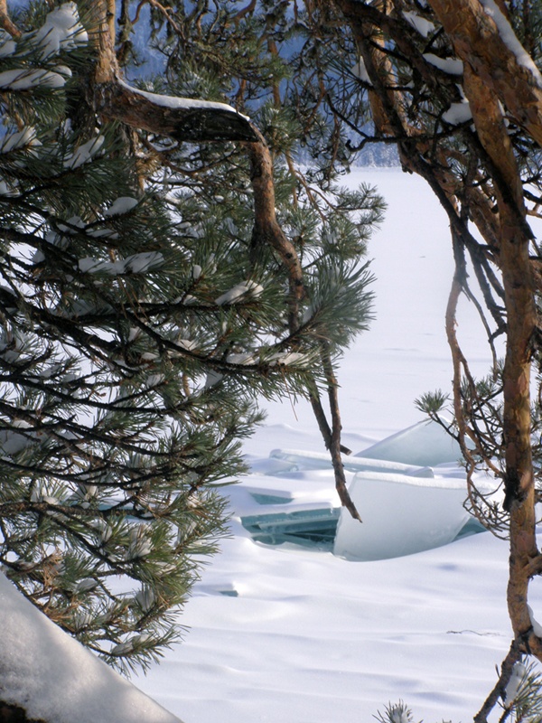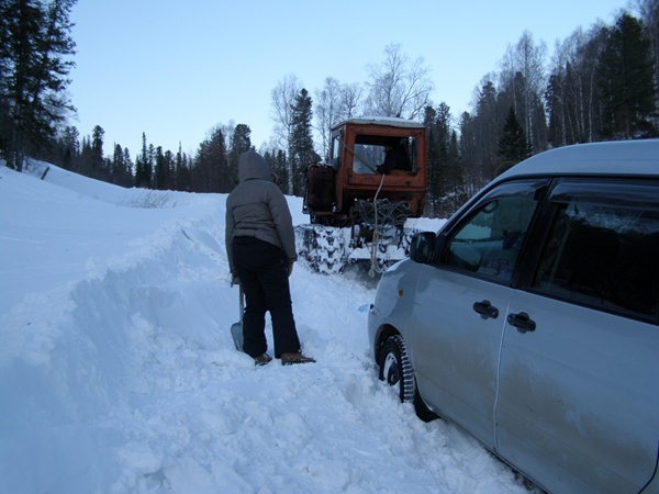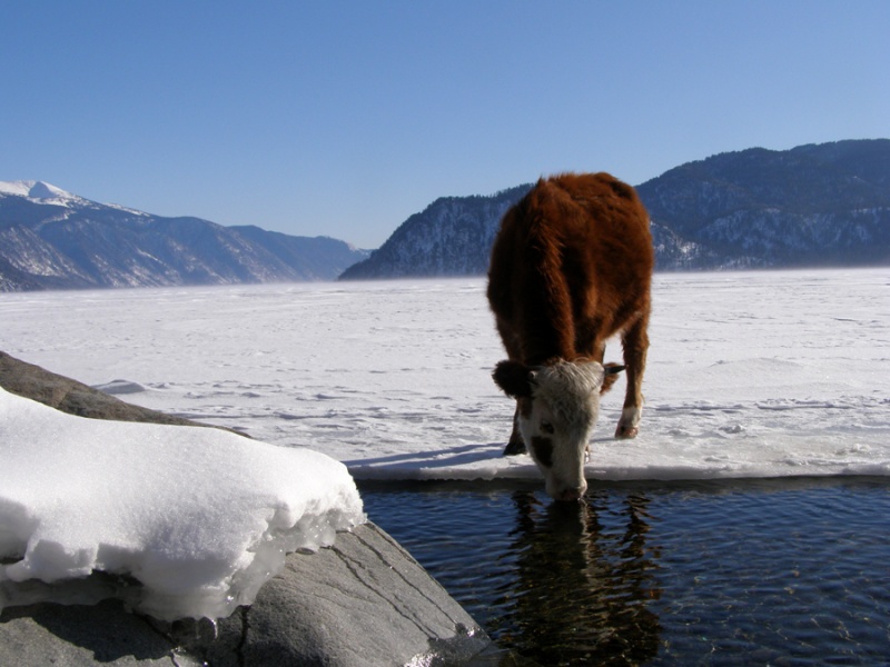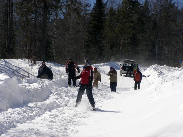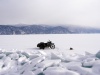 Хотя потом доложил в контору сколько кого приехало. У Визит центра море машин (это кайтеры) Программа в Яйлю сама по себе не отличалась от предыдущей, за исключением поездки по льду. Пешком уже было не очень комфортно ходить, кое где через снег проступала конкретная вода , ботинки мокли, лед хрустел. Гроты ледяные заметно уменьшились и поменяли форму. Видимость в этот раз была идеальной, просматривался мыс и горы южнее, но недолго, ветер поднимал снег с озера.....На льду боролись с ветром пара кайтеров. Снегоходы катали туристов в сторону юга. Экстримальные коровы экстримально шли на водопой исключительно со стороны озера, а не берега, стоя на совсем тонкой кромке льдя. Море дорогой техники (катера и лодки), отттаяло из под снега, даже моторы не сняты. Ждут своего часа. Лед с трещинами. Высокий берег весь оттаял и уже сухой местами с прошлогодней хвоей и листвой. Скоро здесь прснутся клещи. Опять натрясли мороженых яблок, вернее уже не мороженые , а оттаявшие слегка, скорее моченые и еще более вкусные. Обратно нужно было успеть к 7 вечера, ждала баня. По пути нас "поймала "хозяйка одного из домов у озера. Сдают домики на лето . Опять взяли координаты. У машин подошел навеселе мужик, хитро так спросил " А ВЫ знаете , что там на перевале"? Ответили , что ехали пару часов назад сюда. Он сообщил, что полтора часа пробуксовал там, пытаясь выехать с Яйлю и поднятся на перевальчик на 4вд микроавтобусе тойота чтоли и разворотил там все как оказалось по самое нихачу. МЫ не особо испугались, полскольку колеча у него были маленькие...Но мыслт пришла надеть цепи на одну из машин. Но как она пришла, так и ушла почему то. В результате увеиденно зрелище впечатлило. За нами ехало еще 3 машины, одна из которых местная и которая послала за трактором.