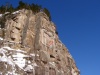 по направлению противоположному течению.а, не, это неинтересно (: это из-под рыхлых отложений вода бежит, скорее всего. там как раз террасы по берегу от яйлю вверх по течению тянутся, насколько помню.