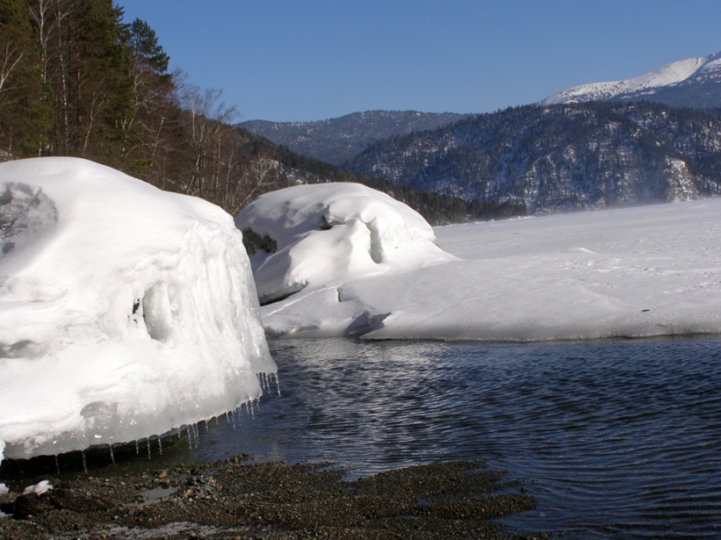 Теплые потоки пробивают лед..это по правому берегу? много ль их, потоков? сколь велики они? далеко ли от яйлю?