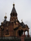 В Сростках же не только едят! Там же еще есть музей В. Шукшина! «Заедем на обратном пути», - думаю я. Но в голове моментально возникают строки из отчета Павла (3sfe) про то, что он пожалел, о том, что сразу не заехал в музей. Так что, уверенно сворачиваю к музею. Едем по улице и сразу в глаза бросается церковь. Недавно постоенная, но, по моему мнению, являющаяся не меньшей достопримечательностью села, чем сам музей.
