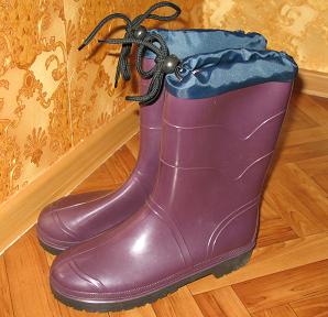 купила резиновые сапожки в магазине типа Ленты, не помню название точно - симпатичная клетка, не оч изящные конечно, но зато с войлочным носком и за смешную цену в 300р