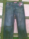 Искусственно потертые (местами), украшены стразами по длине штанин.
