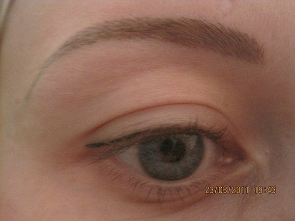 я сделала верхнее веко (тут выкладывала ДО коррекции). Сделала коррекцию...блин - одно веко не доведено до вн.уголка глаза, как другое. И на одном чуть толще "стрелка". Тоже хочу корректировать...а это 1 тыр