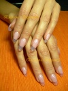 а насчёт уваж.себя мастера -больше полутора лет не наращиваю ногти, а до этого всё хотела такой маникюр (как теперь на одной из реклам Стайлиш), но предлагалось либо френч,т.е.нанесение белого поверх ногтя,так что видно,что это лак(краска?), либо ногти нарощенные "под лак"(для нанесения лака)..делала и гель и смолу(она больше понравилась..а акрил попробовала-вообще не пошёл)...а Креатюр -это спец.материалы или тоже (гель? смола?) но техника какая-то особая??
