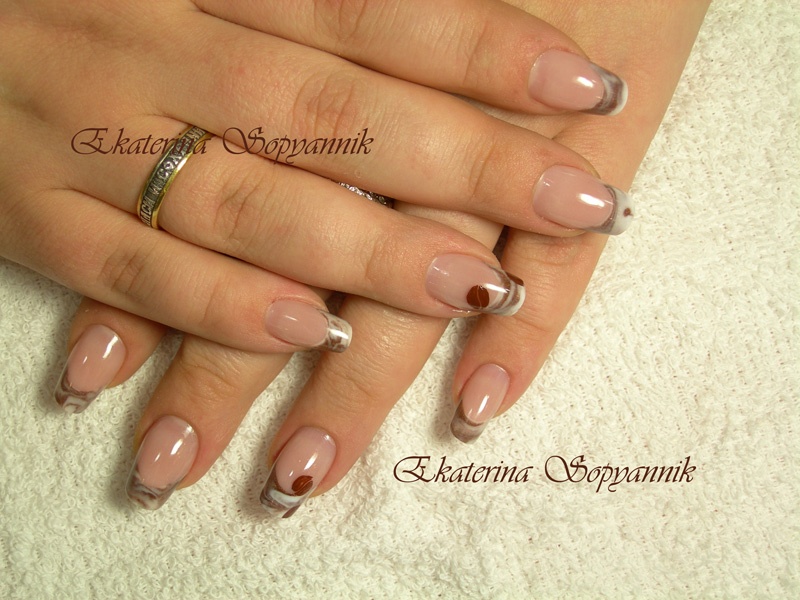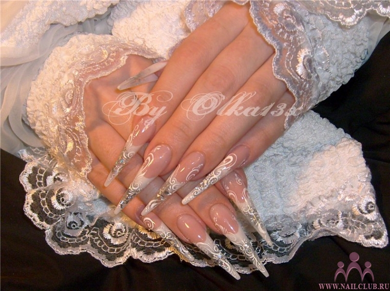френч никогда не устареет... а на свадьбу я советую всегда именно его: аккуратный, изящный френчик, без всяких на нем побрякушек, цветочков и тд( хотя многие хотят дизайн- их право и я, как мастер, его уважаю, но если спрашивают моего совета, то высказываю свою точку зрения). а считаю я так, потому как разные дизайны за свою жизнь можно делать- не переделать. а вот в образе невесты все должно быть продумано до мелочей и промахов не должно быть.украинские невесты очень любят яркие, длиннющие ногти с килограммами страз, цветов и росписи. я когда смотрю на эти фотографии, то взгляд только туда и падает. а, как мне кажется, у невесты все должно быть идельно, но смотреть должны на Нее!!! а не разглядывать что же она там налепила. По-моему, лучше коротенького красивого френчика еще ничего не придумано для образа принцессы: благородной, утонченной, изящной... ну, вот как-то именно такой я вижу Невесту
