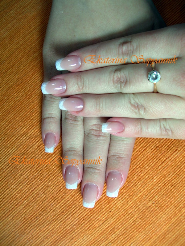 Короткий квадратный френчик. Снежный и мерцающий... На фото, к сожалению, не видно.Да, Катя, на самом деле он гораздо красивее!!!
