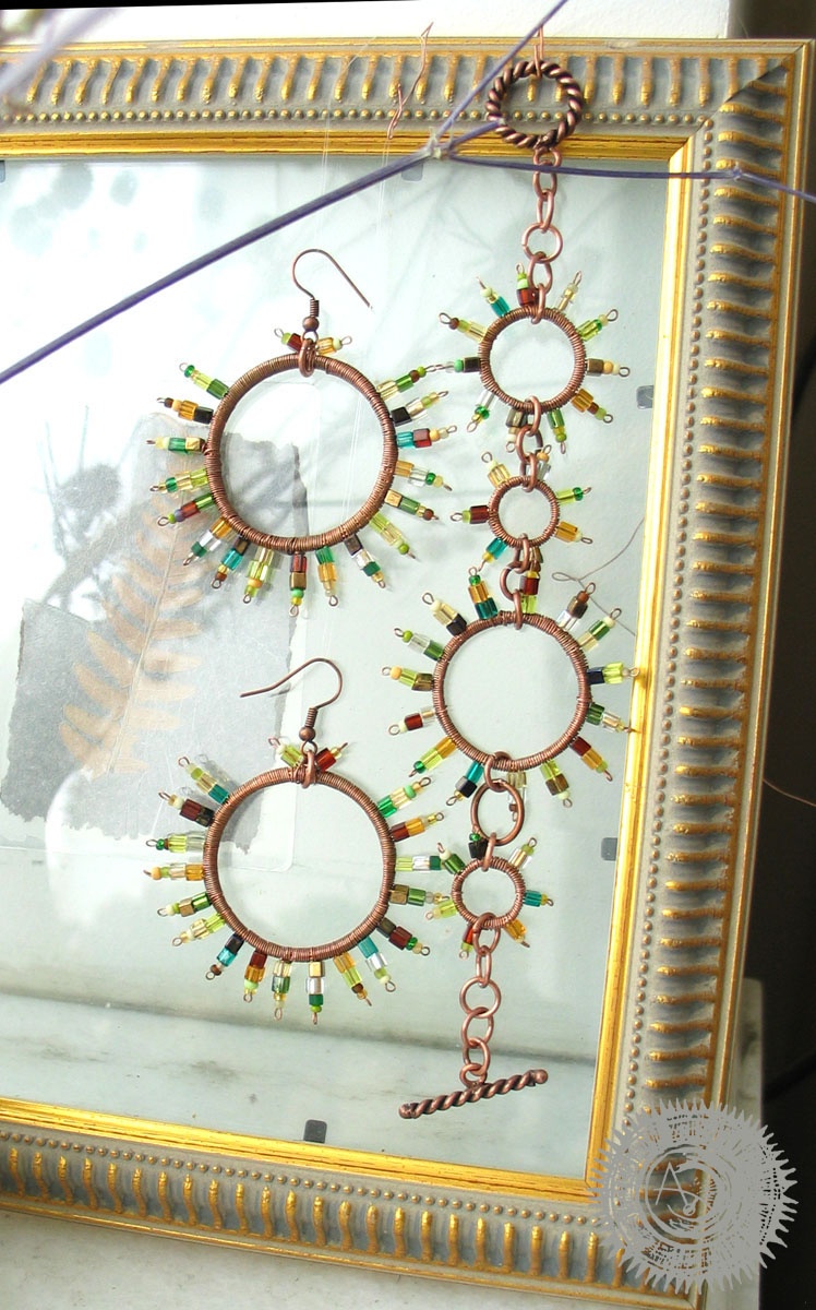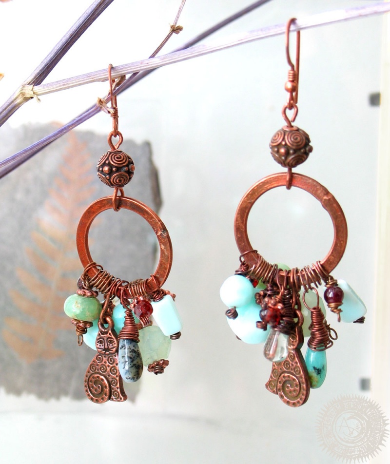 ручная работа. медь, сердолик, нефрит, говлит под бирюзу. длина застегнутого браслета 19см (можно удлиннить) 1100 р.бонус к браслету - серьги . Длина от швензы 4,5 см, ширина 3,7 см