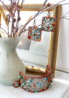 комплект продан, но можно сделать подобныйручная работа. медь, сердолик, нефрит, говлит под бирюзу. длина застегнутого браслета 19см (можно удлиннить) 1100 р.бонус к браслету - серьги . Длина от швензы 4,5 см, ширина 3,7 см