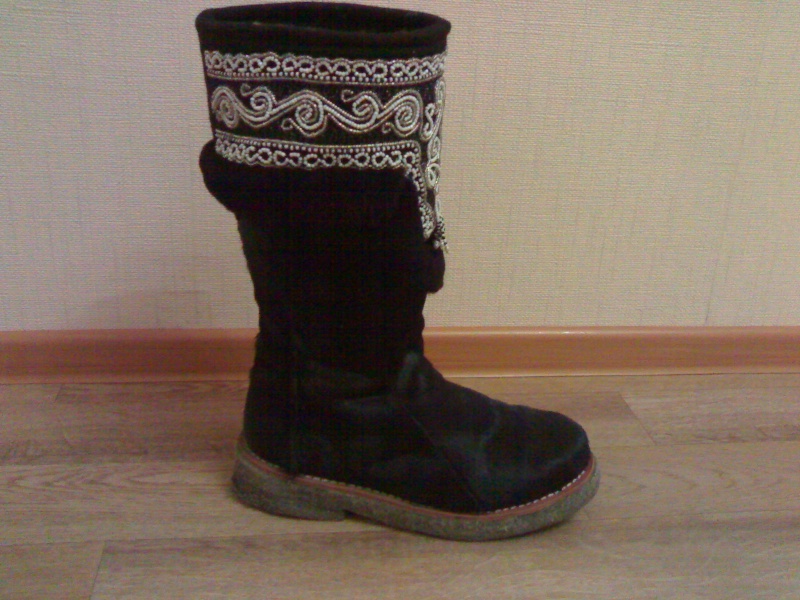 у меня мама сейчас в иркутске живет,она мне все уши прожужала про сапоги из оленьего меха.Такие,мехом наружу.Говорит,там все в таких ходят,ооочень теплые(вроде внутри овчина,а сверху мех олений).Камусы вроде называются по-правильному.Стоят недешево(хорошие).Мне,чсетно говоря,не очень нравятся такие.как йетиПравильно называются они по-разному - в зависимости от территории происхождения. Например, когда в Норильске жили - и женские, и мужские назывались унты (женские еще унтайками), на Чукотке мужские называют унтами, женские - торбасами. Оформление тоже бывает разно. Купленные в Норильске были без вышивок, полностью просто из меха. Чукотские - там в основном с бисерной вышивкой.![]()