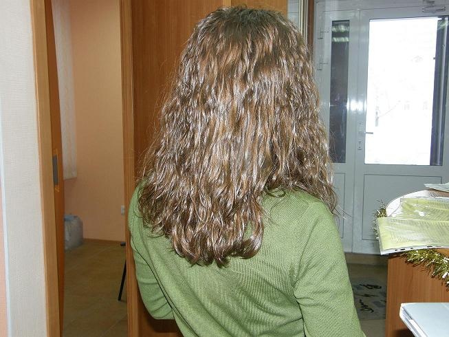 А вот на крупную коклюшку получаешь хороший завиток, который и пальцами уложить можно, создав мокрый и не очень мокрый эффект. И на бигуди разного размера закрутить, и с помощью фена и круглой расчёски любой вариант укладки сделать, которая будет держаться долго. Или, например, помыв голову и ничего не делая с волосами получить практически прямые волосы. Тем более у вас волосы довольно длинные (по лопатки - длина относительная...может оказаться, что в случае долговременной укладки придётся часть волос убирать, чтоб под тяжестью волос не сильно завиток вытягивался).Ответ на сообщение Re: Парикмахер. (часть 2) пользователя grifona