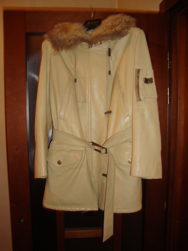 Продам светлую кожаную куртку. Внутри подстежка из меха (в рукавах меха нет). Размер 44-46. Стильная, интересная. Б/у, требует чистки, м.б. покраски в некоторых местах. Отдаю за 4,5 т.р.