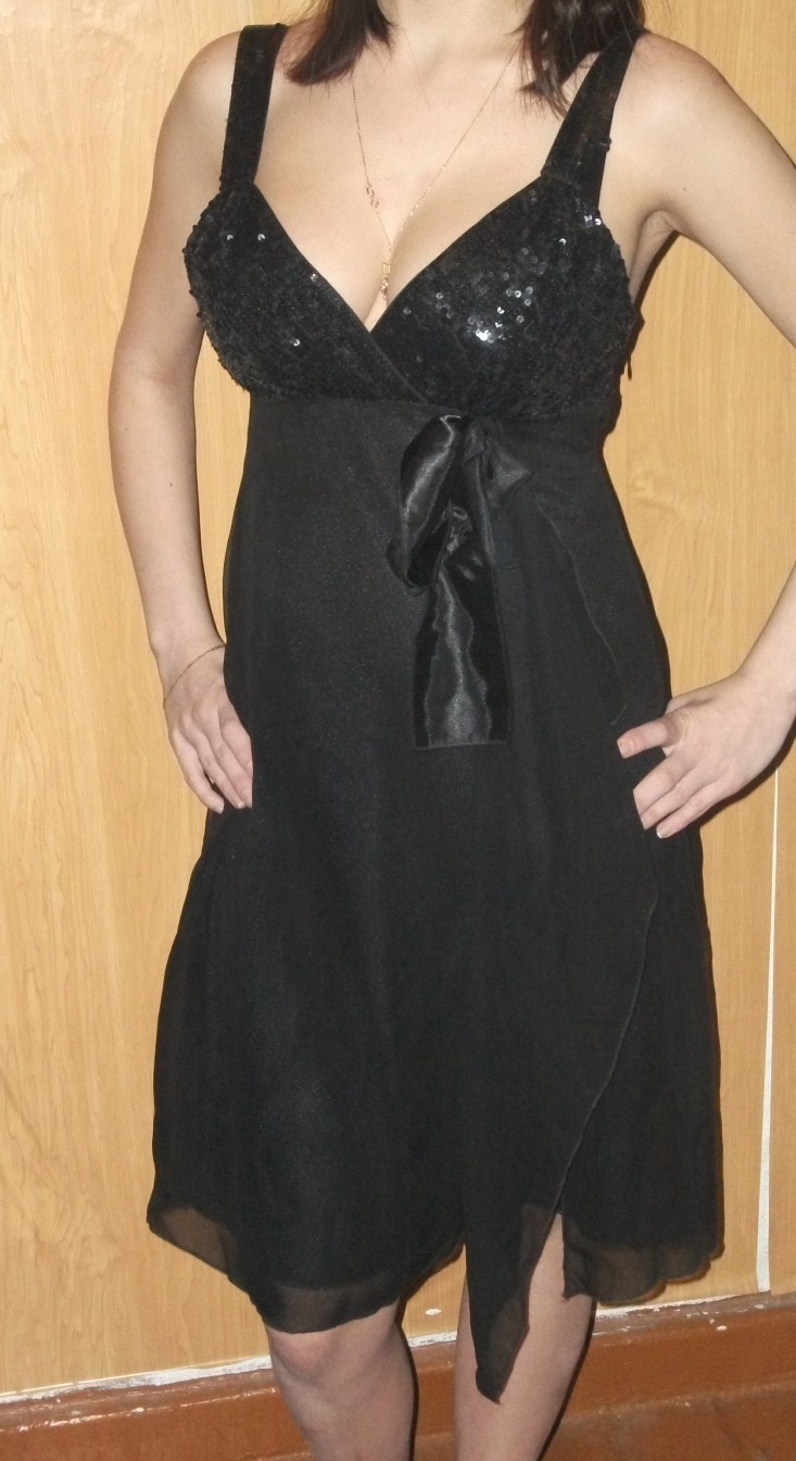 Продам вечернее платье к Новому году. Черный атлас. Сверху кружево. Иммитация "под корсет". На талии бант. Низ - солнце с запахом. Очень красивое. Одевалось один раз на новый год. Размер 42-44. Покупала за 5000 - отдам за 2500