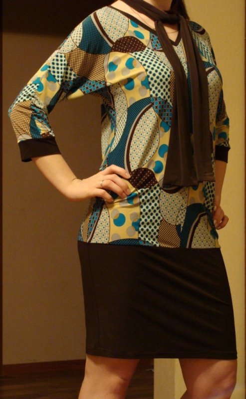 6. Платье So Franch Трикотаж + юбка из натурального шелка, летящая, талия занижена, отделка -бант. Рукав 3/4. 1000 руб.
