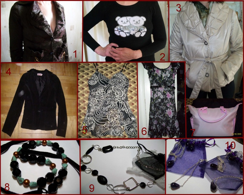 (трикотажное летнее черное платье в горошек benetton за 1200, желтое свободное платье Zara 1200 руб, футболочки-поло benetton по 500 руб, шорты-хлопок и спорт трико (все mango) по 900-1000 руб, пуховик зимний-черный, кроссовки nike-легкие)