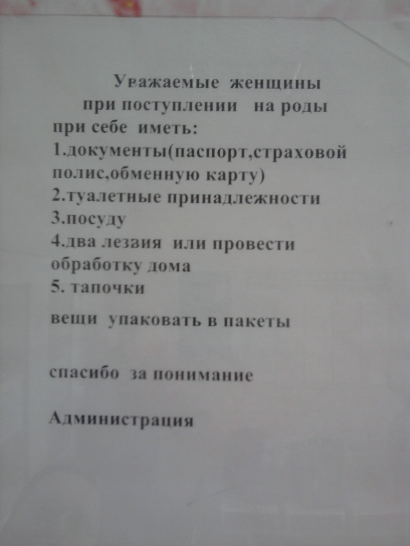 Я тоже уже пакеты собрала, осталось 3.5 неделиЯ когда в РД ездила записываться, посмотрела, что у них там написано по поводу того что брать с собой, а потом еще помучила вопросами женщину которая договор составляла