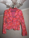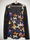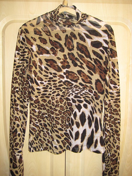 9)кофта теплая "2 в 1", 42-44, черная часть - машинная вязка "лапша", кремовая - легкая блузочная синтетика, на кремовом фоне - золотистый горошек, расстегивается полностью, в воротнике все стразы на месте. 100р.