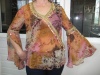 11)трикотажная коричневая кофточка, буквы спереди золотистые, цифра обшита золотыми пайетками, интересная спинка на металлич.кольце.42-44-46, 70р